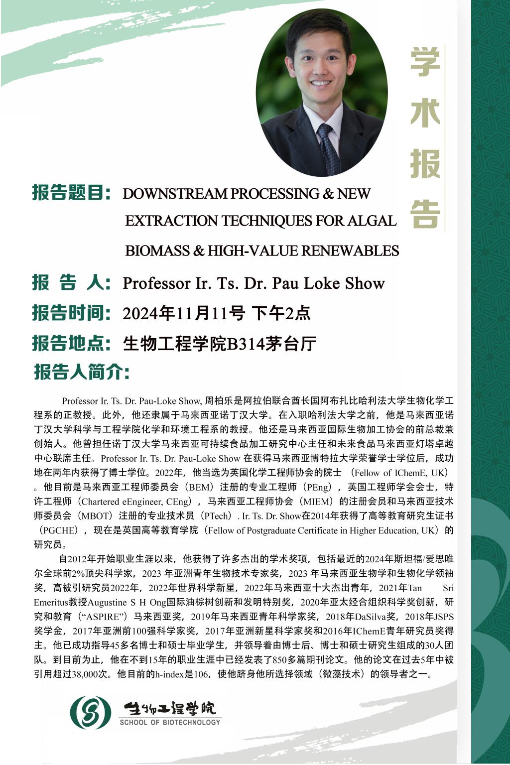 上一篇:11月11日学术报告:Waste to Value: Innovative Strategies for Sustainable Utilization and Resource Recovery in the Circular Economy