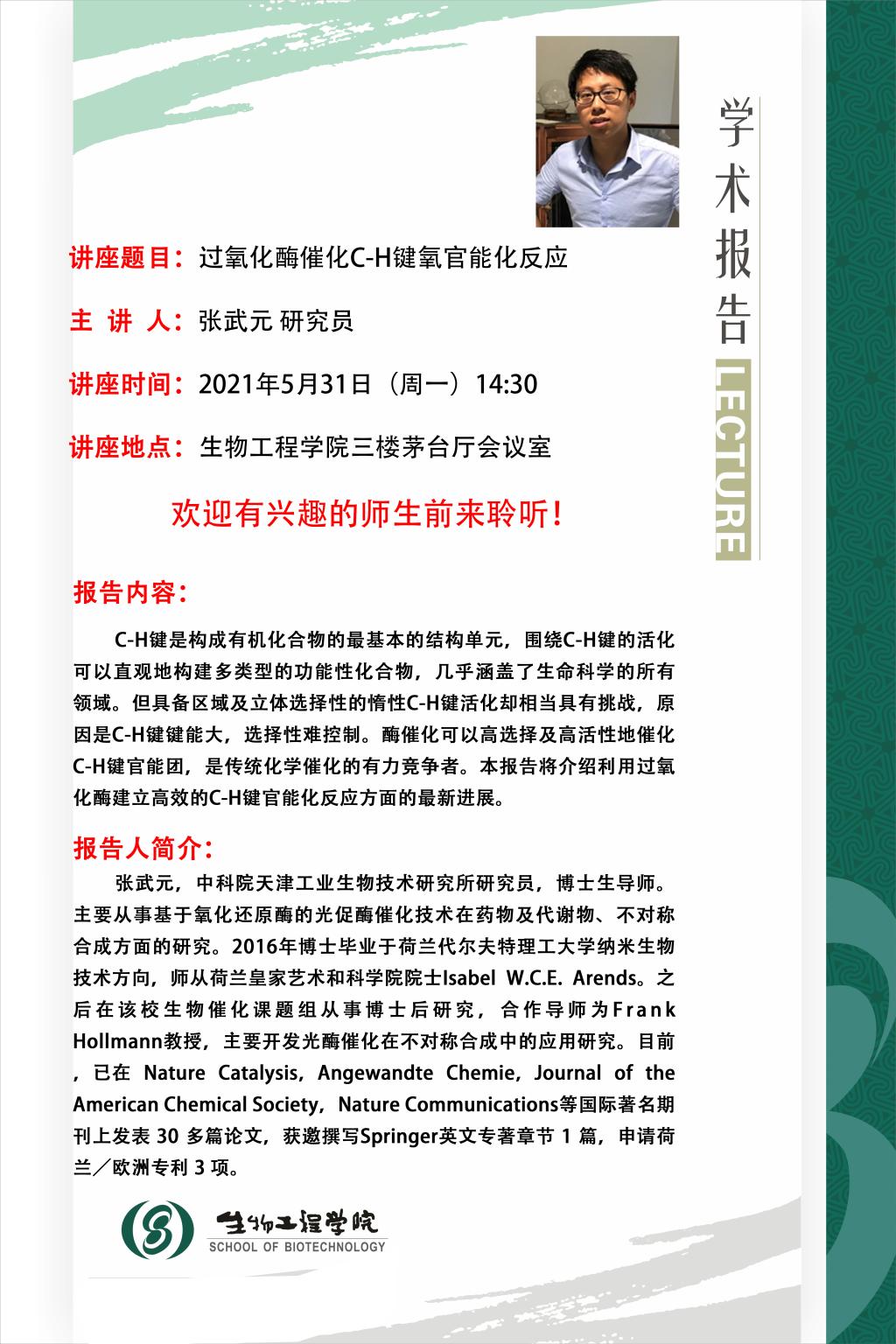 下一篇:5月31日学术报告:酶催化反应机理和选择性的计算化学研究