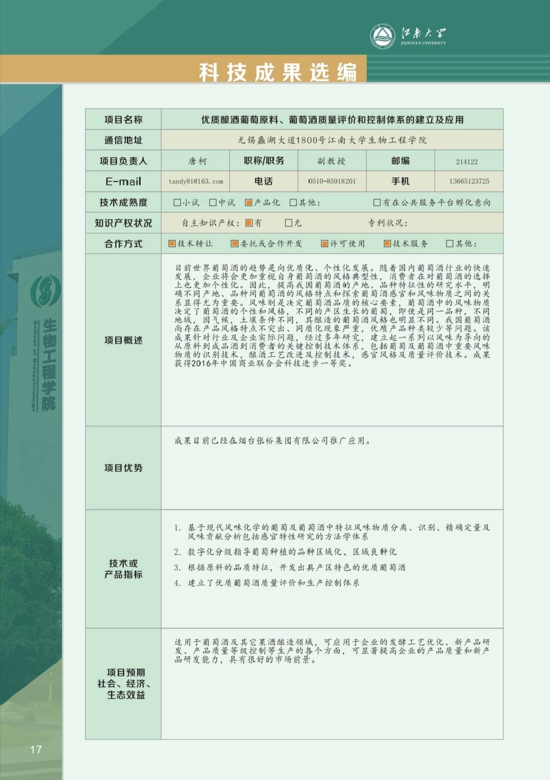 工业生物技术教育部重点实验室