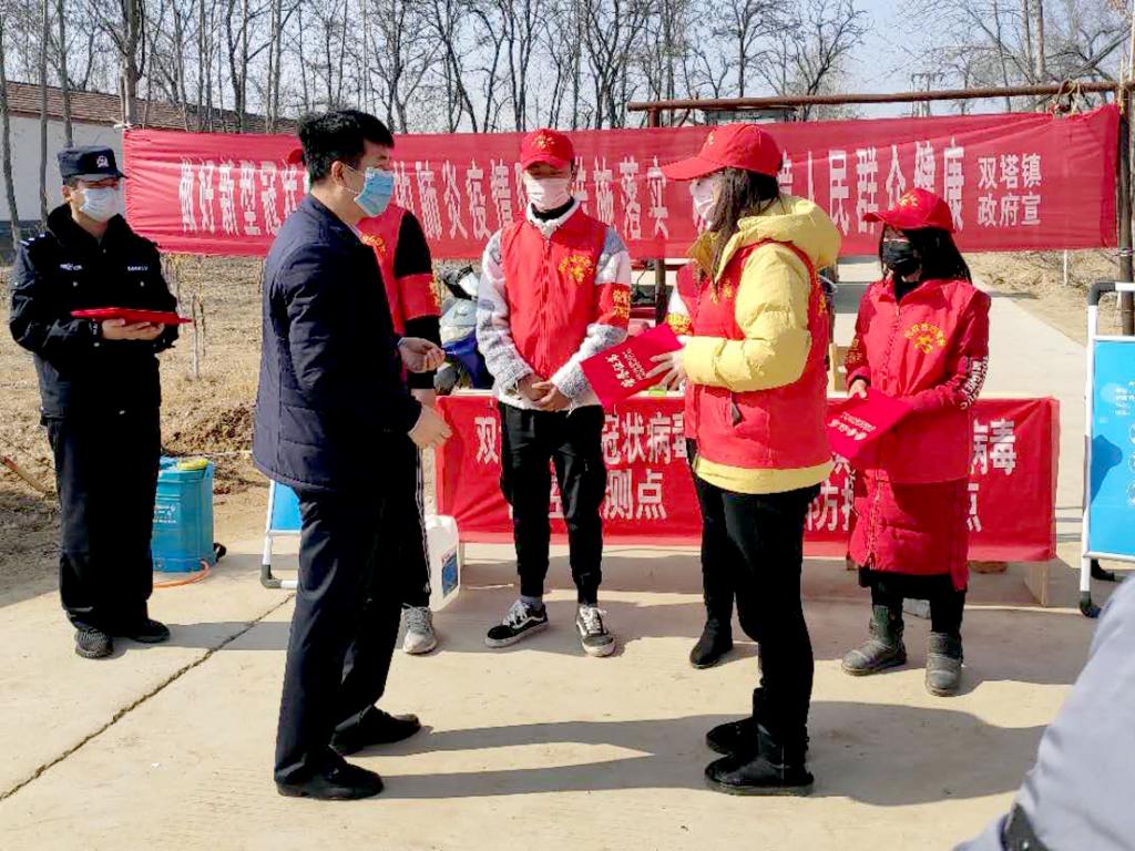 付霜雪(右一)在参加防疫工作