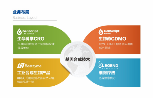金斯瑞生物科技股份有限公司是全球化的生物科技集团公司。集团植根于领先的基因合成技术,业务范围涵盖生命科学CRO、生物药CDMO、工业合成生物产品及细胞疗法四大领域。