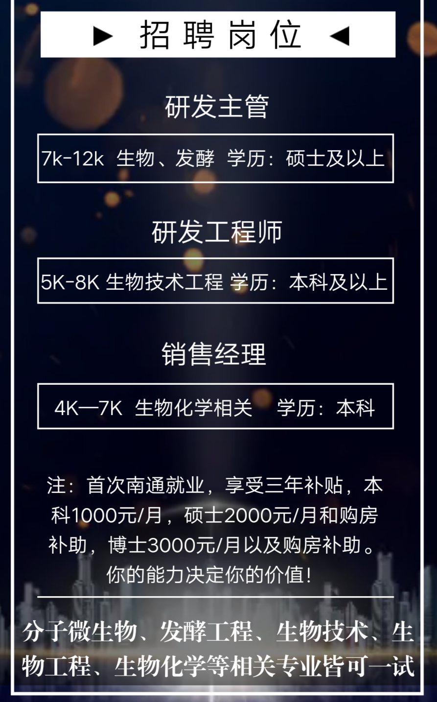 上一篇:生工学院【2021】128号 江苏量界生物技术有限公司招聘简章