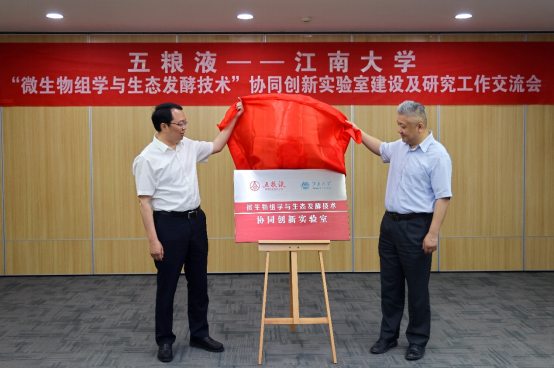 “微生物组学与生态发酵技术”协同创新实验室。协同创新实验室整洁的实验环境、先进的实验设备、完备的实验规范给来访嘉宾留下了深刻的印象。在揭牌仪式中,曾从钦代表五粮液集团对91色