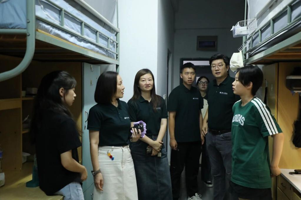 当天下午,学院领导与辅导员团队走进新生宿舍,开展“面对面·心连心”走访活动。老师们细致询问同学们的入住感受和专业期待,围绕入学适应、军训安排、宿舍安全等话题与新生畅聊,并送上防诈温馨提示。同学们纷纷表示,学院无微不至的关怀让他们感受到了家的温暖,对即将展开的大学生活充满信心,期待在生工学院这片沃土上茁壮成长。