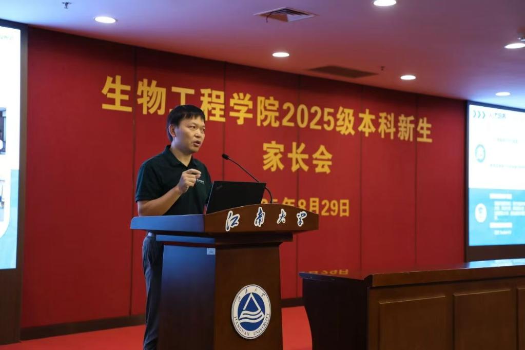 8月29日下午,学院在图书馆五楼报告厅举行2025级本科新生家长会。91色 党委书记程捷音,党委副书记、副院长林丹,副院长陈献忠,新生班主任及辅导员共同参会。会议由学院分团委书记周春江主持。陈献忠从学院历史、学科优势与人才培养模式三个方面,向家长展现生工学院的雄厚实力。林丹从大学生心理发展规律出发,分享“家校共育”的理念与方法。最后,程捷音通过“感谢与欢迎 ”“放心与理解”“学习与成长”三组关键词进行了总结分享,并期待家校合力,共同助力学生健康成长。互动环节,家长踊跃提问,围绕专业发展、就业前景、校园生活等话题与老师深入交流。