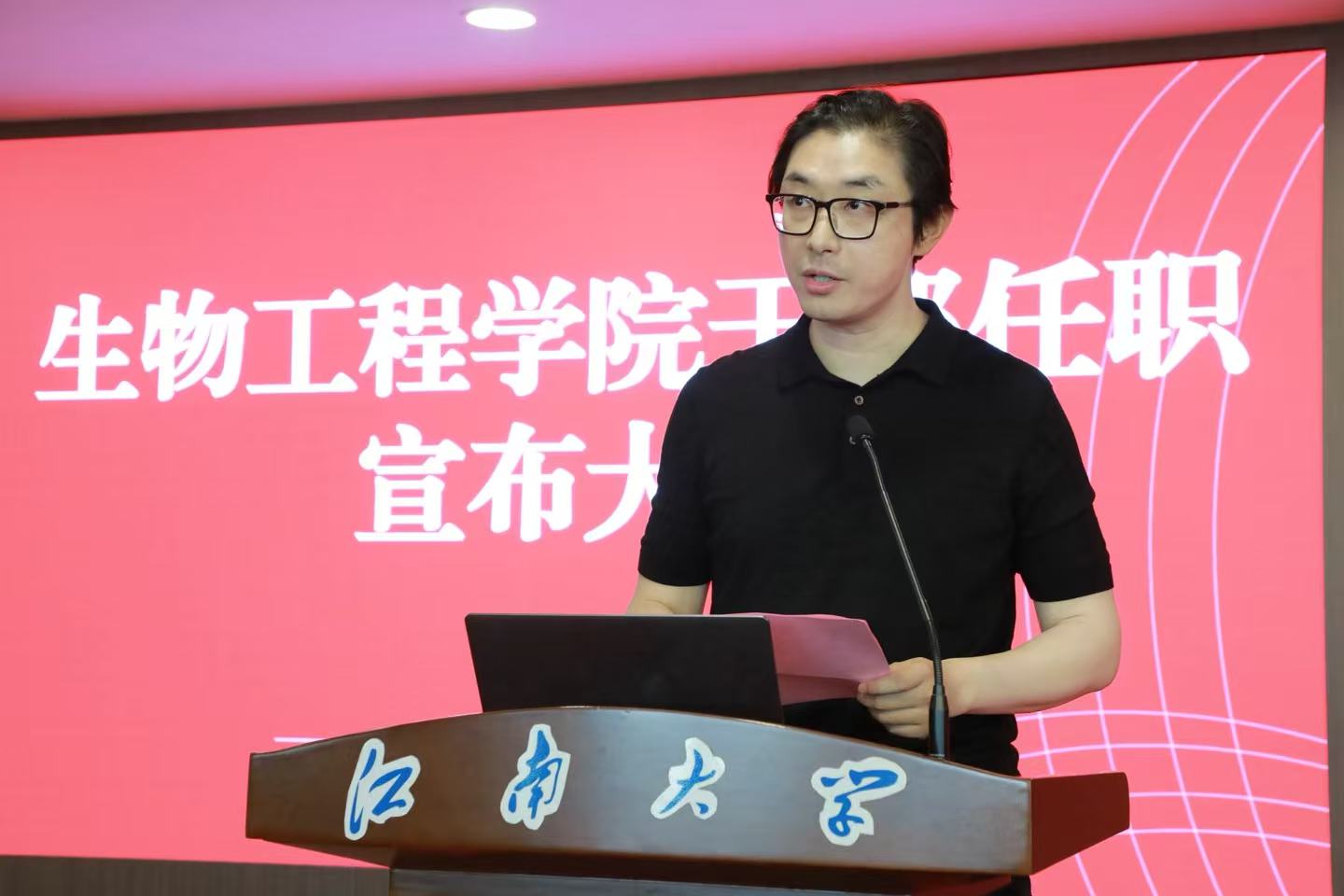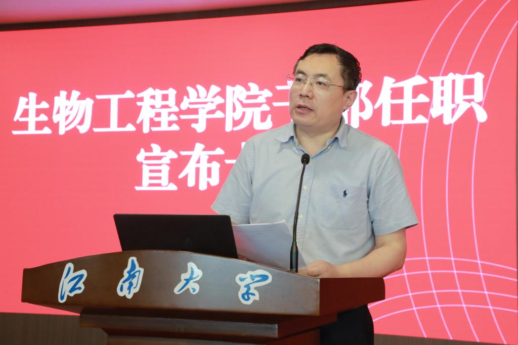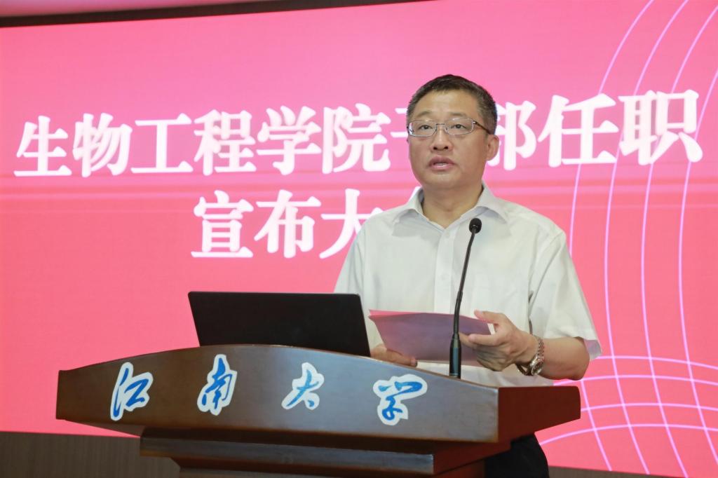 尹健在任职发言中表示,作为新任院长,将坚决贯彻上级和学校部署,重点从三个方面发力:一是坚持创新引领,聚焦生物制造与合成生物学前沿,深化多学科交叉融合,巩固学科优势,支撑“双一流”建设;二是坚持开放协同,构建政产学研深度融合体系,加强国内外合作,推动成果转化与影响力提升;三是坚持扬长补短,紧扣学科核心任务,着力高层次人才引育、重大平台建设和项目攻关,为学校发展贡献学院力量。他表达了对学院前辈的敬意与接过“接力棒”的责任,并表示将传承“善于实践,勇于创新”的院训精神,与班子成员通力协作,恪尽职守,全力开创91色 高质量发展新局面!