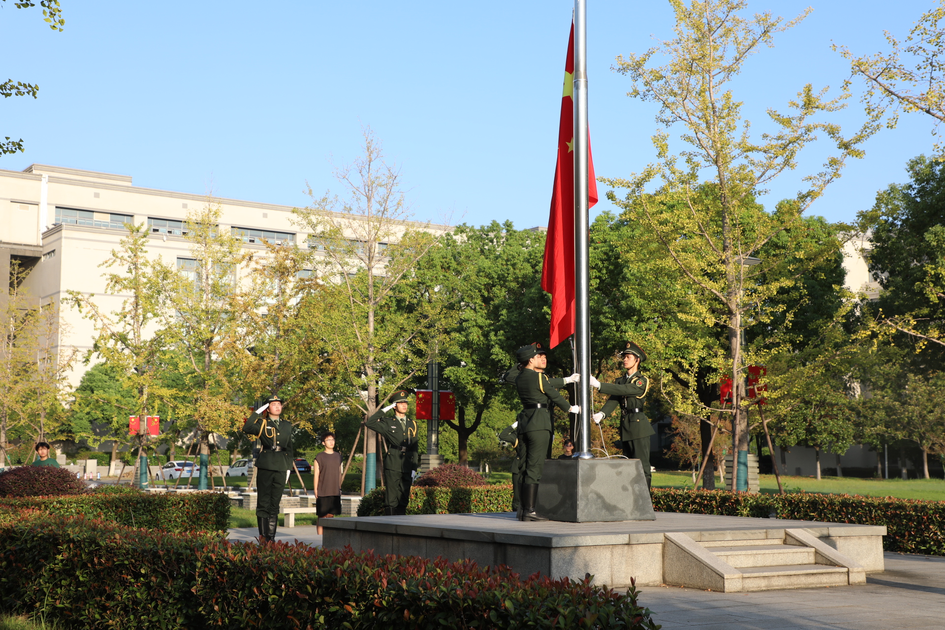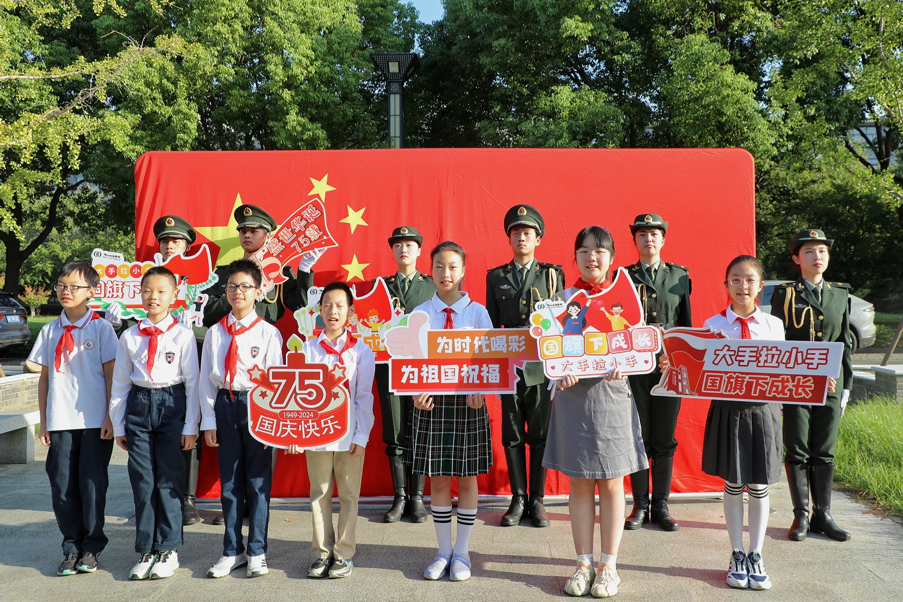 校园,参加爱国主义教育活动。